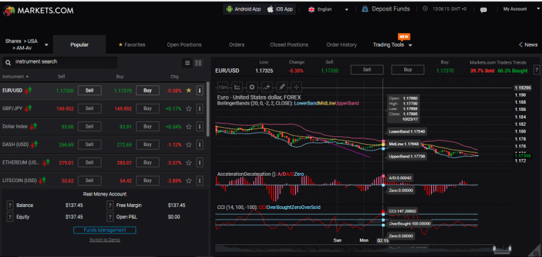Het platform waarop je kan handelen in CFD’s en Forex is erg intuïtief. Je hoort ons niet zeggen dat het platform door Apple ontwikkeld is, maar vanaf het eerste moment is helder wat waar te vinden is en dat bespaart veel frustratie. Het Markets platform zorgt er voor dat je het vanaf het begin snapt, maar als je verder in het platform duikt, komen de nieuwe functies en opties ook duidelijk naar voren. Eigenlijk lijkt het er op dat Markets er voor heeft gezorgd dat het platform uitermate geschikt is voor zowel de beginnende trader die genoegen neemt met basis functies, als de ervaren trader die juist gebruik wil maken van meer uitgebreide functies naarmate zijn kennis toeneemt over het traden.